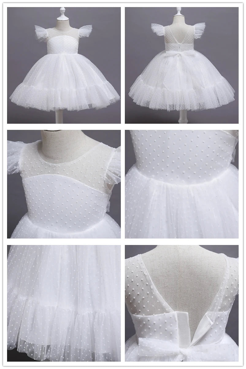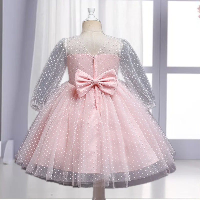 Flower Girl Wedding Dress Kids Pink Birthday Party Bow Princess Clothes Baby Evening Gala Costume Summer Ruffle Sleeve Tutu Gown