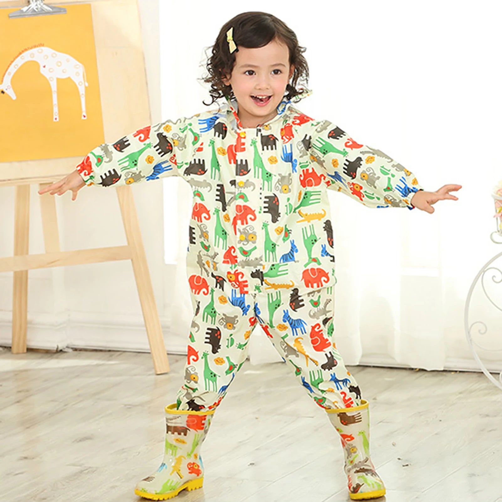 Kids Raincoat Waterproof Rain Poncho Cartoon Dinosaur Children School Student Jumpsuit Rainsuit Boys And Girls Travel Rainwear