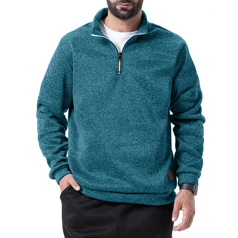Men's Half Zipper Long Sleeved Sweatshirts Solid Color Stand Collar Pullovers Outdoor Solid Color Lightweight Streetwear