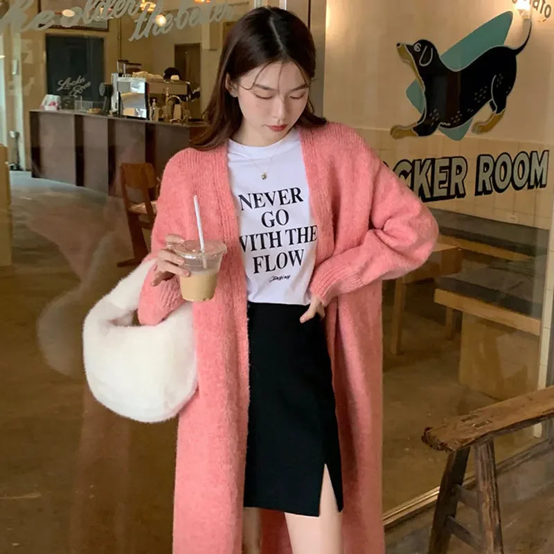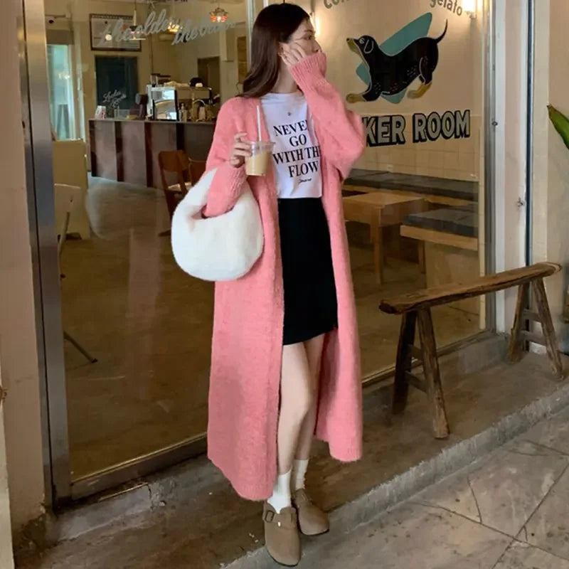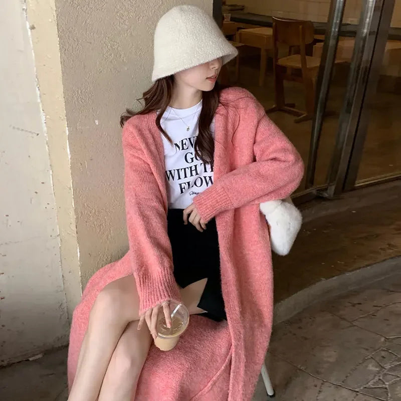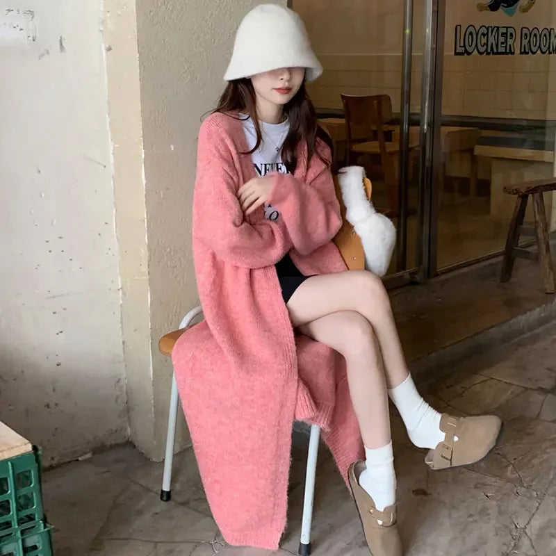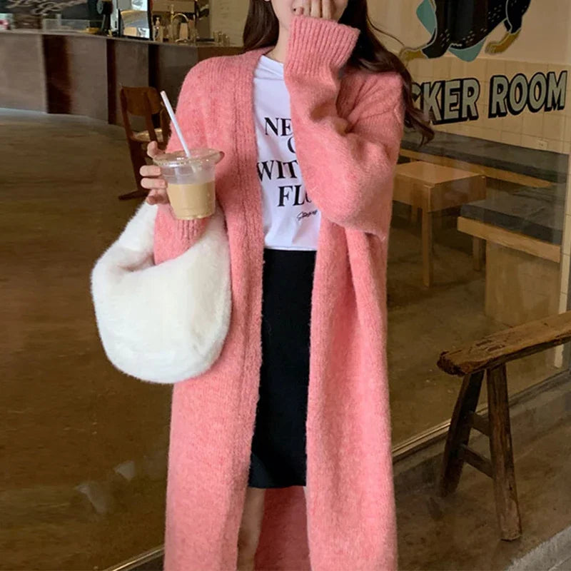 Women Pink Cardigan Knitted Streetwear Autumn Elegant Thicken Knitwear Harajuku Kimono Loose Chic Wool Cardigans Ladies Winter