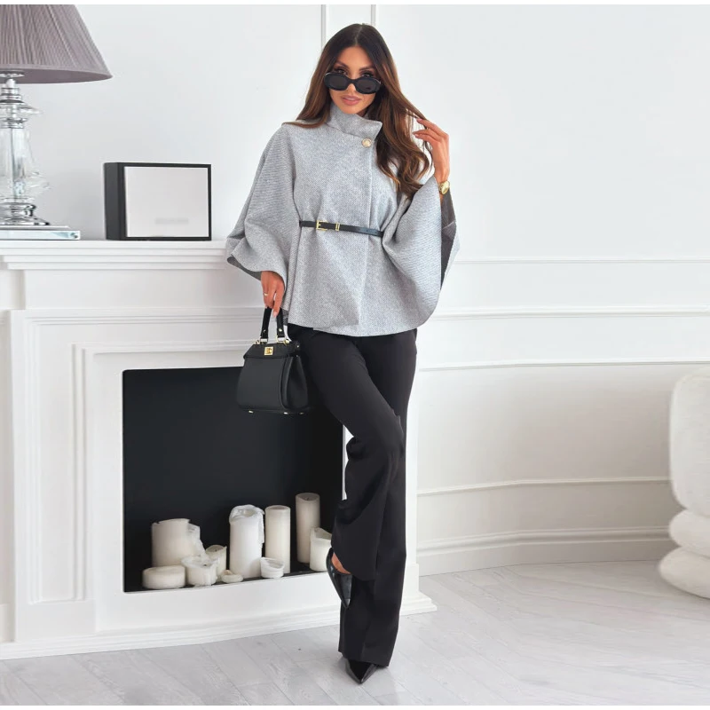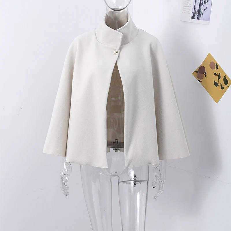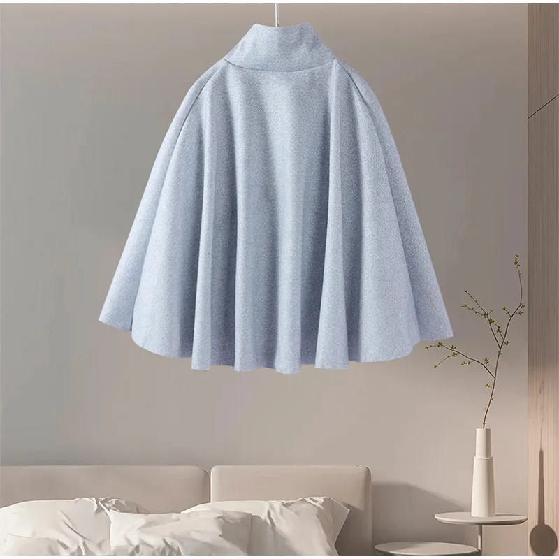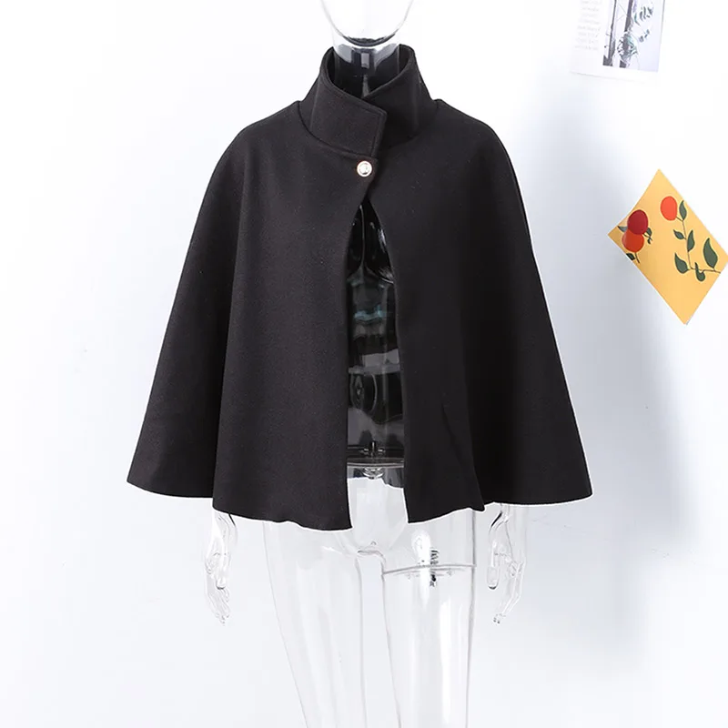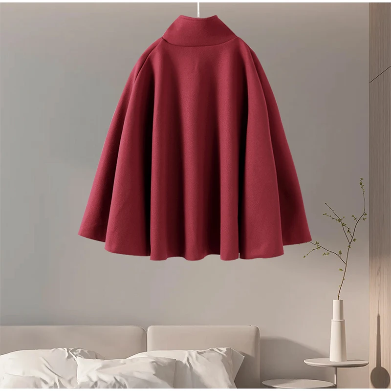Woolen Cloak Cape Coat Women Elegant Stand Collar Oversize Batwing Sleeve Lady Jacket 2024 Autumn Winter Fashion Woman Ponchos